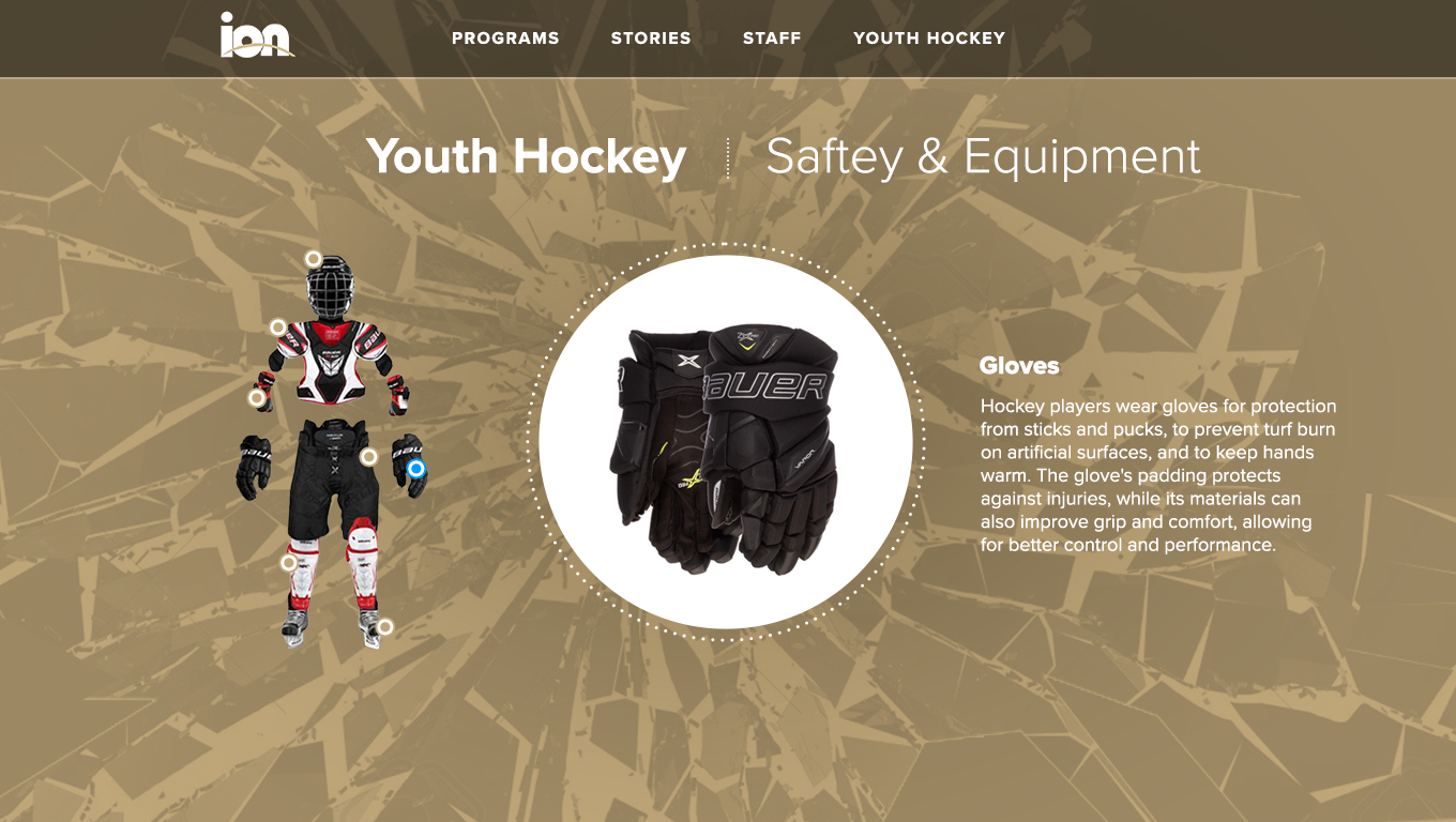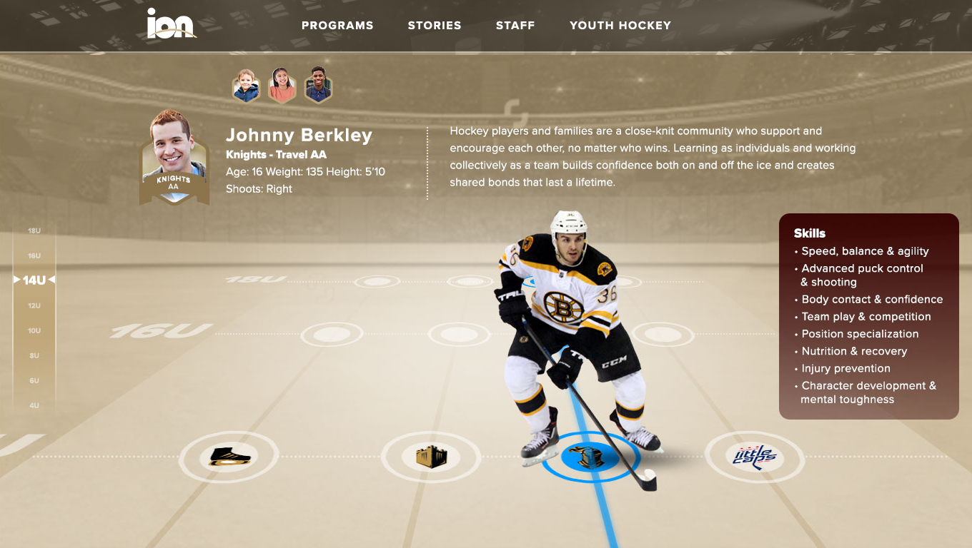 For the Ion International Training Center redesign, the goal was to break away from standard information heavy layouts and create a fresh, exciting digital experience that truly reflected the energy of youth hockey. The design focused on incorporating dynamic action photography to showcase the passion, speed, and spirit of the sport while bringing the rink atmosphere online. By leaning into an interactive approach, the redesign moved beyond static pages to create an engaging environment that mirrored the fast paced nature of hockey itself.