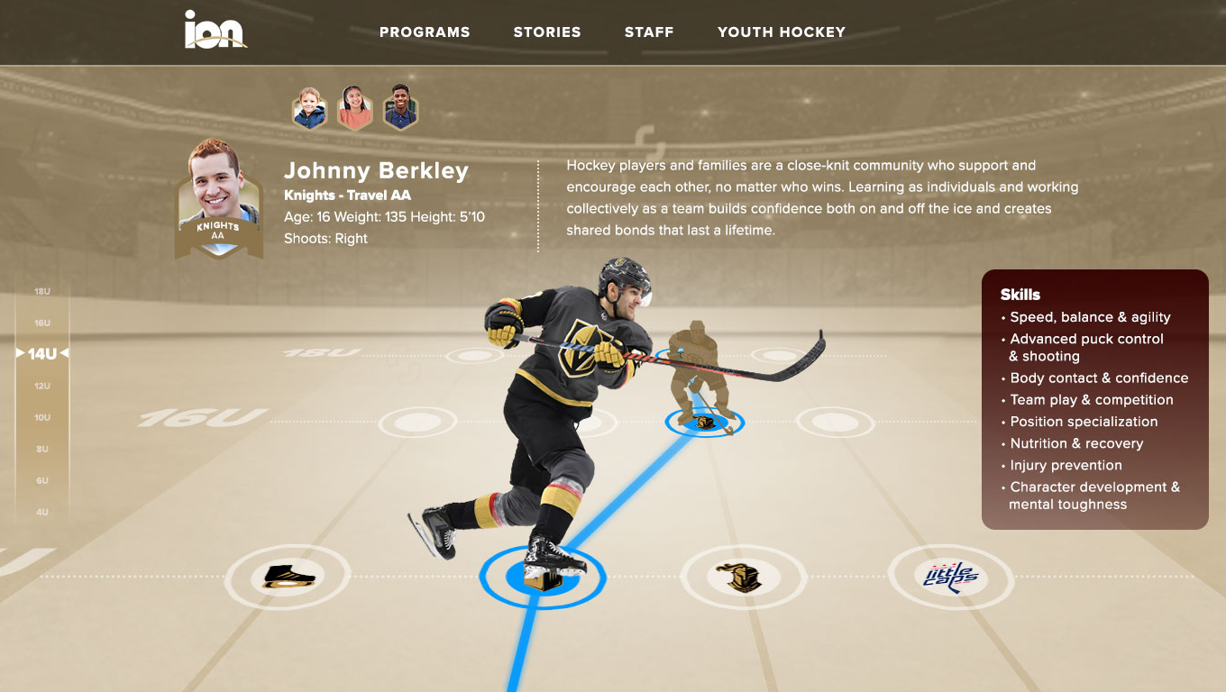 A central feature of the project was developing an interactive journey map that guided parents through their child’s hockey development, from beginner programs to high school and collegiate levels and even professional opportunities. This tool not only provided clear, valuable information but also made the process visually engaging and intuitive, empowering families to explore the pathways available for their young athletes. The result was a digital experience that informed, inspired, and built stronger connections between the training center and its community.
