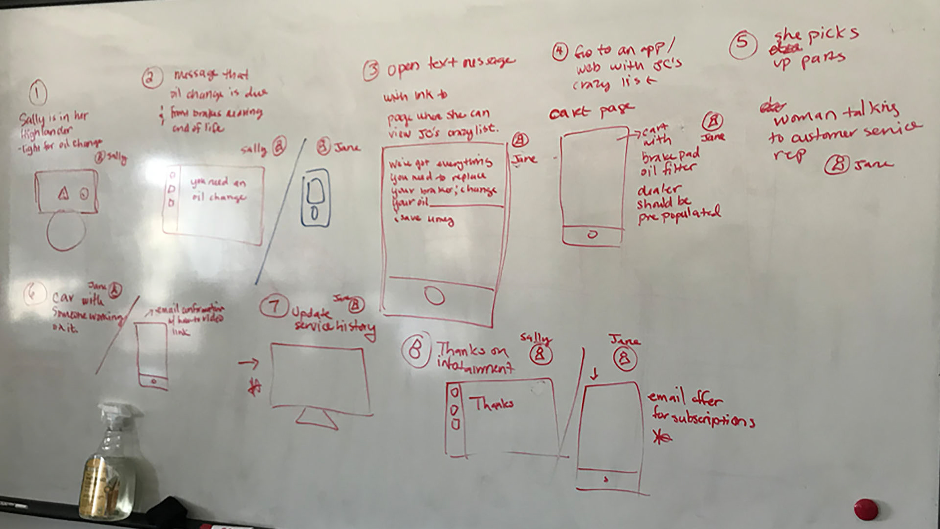 Serving as a UX Designer for Toyota, I contributed to the development of an AI-powered agent that guides customers through proactive vehicle maintenance and tailored accessory suggestions, improving the overall ownership experience. My role involved mapping customer journeys, designing intuitive multi-channel experiences, and collaborating closely with AI engineers and data teams to translate telematics, service history, and purchase data into actionable, user-friendly interactions. The goal was to simplify vehicle upkeep while driving engagement and after-market sales.